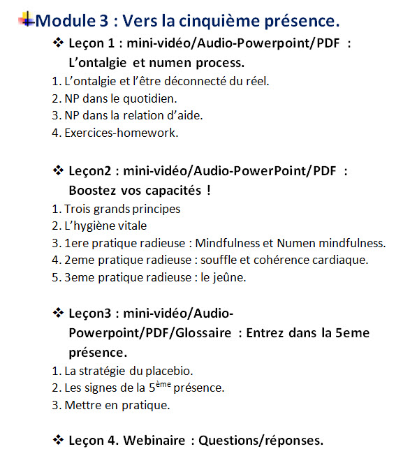 3 Modules de 4 Leçons (12 leçons au total) avec des vidéos, des MP3 et des PDF. Par exemple, la "C3I" n’est qu’une PARTIE de la leçon 3 et le "Switching", une partie de la leçon 4.