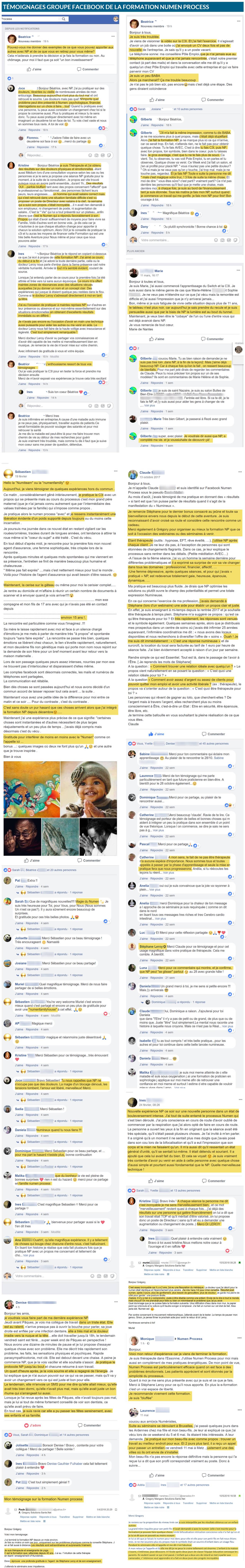 Voici quelques témoignages captures d'écran du Groupe Facebook et d'emails